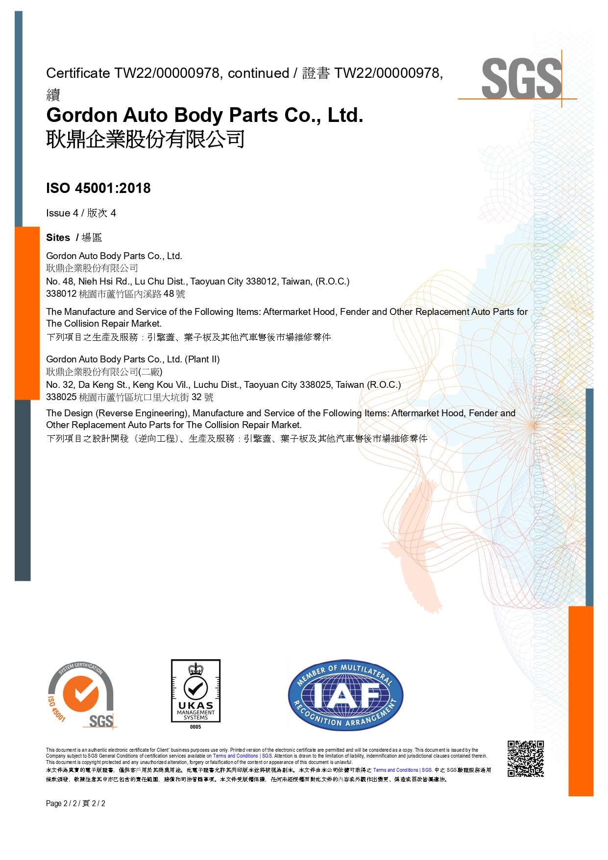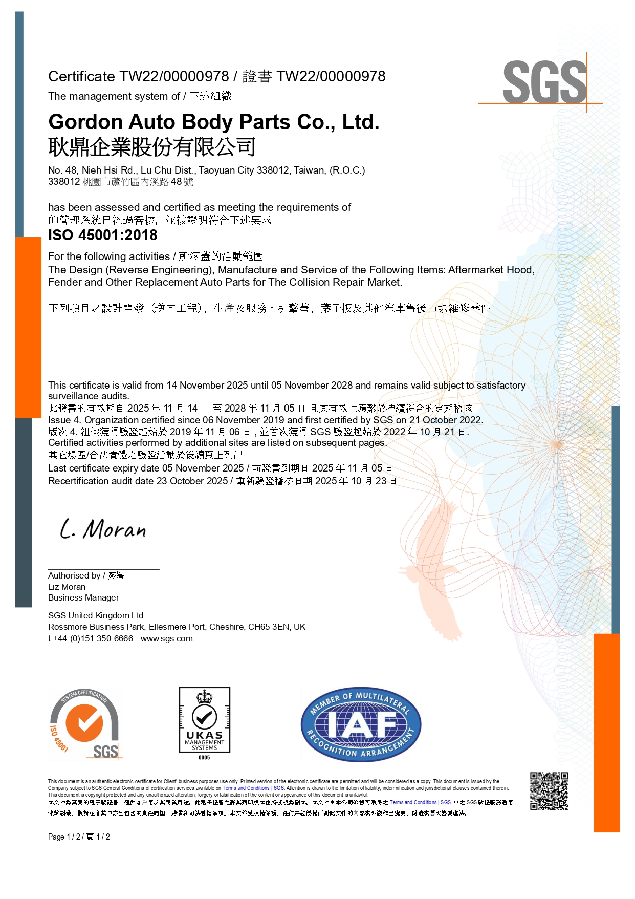 Gordon had been dedicated to getting certified TS16949 certificate and succeeded in 2005. It was certainly crucial endorsement for Gordon’s quality control. Due to the great dedication we put on our product quality, we have been certified the IATF16949:2016 version in 2018. Therefore, we will definitely do our best to make the best quality products to value our clients.