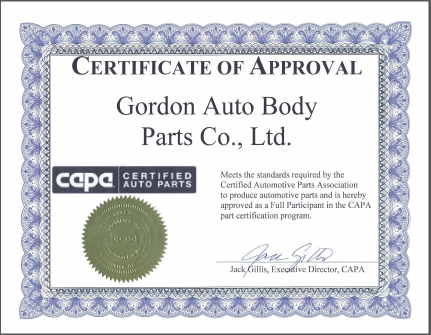 We were the first manufacturer in Taiwan accredited by CAPA in the later 1980s. In 1994, we were awarded CAPA’s prestigious CTQM (Total Quality Manufacturer) honor and today make more CAPA certified parts for the US market than any of our competitors. The long-standing cooperation between Gordon and CAPA will bring more quality AM parts to the US market.